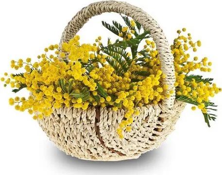 Elegante arreglo de mimosas en una cesta, adecuado para el día de la mujer.